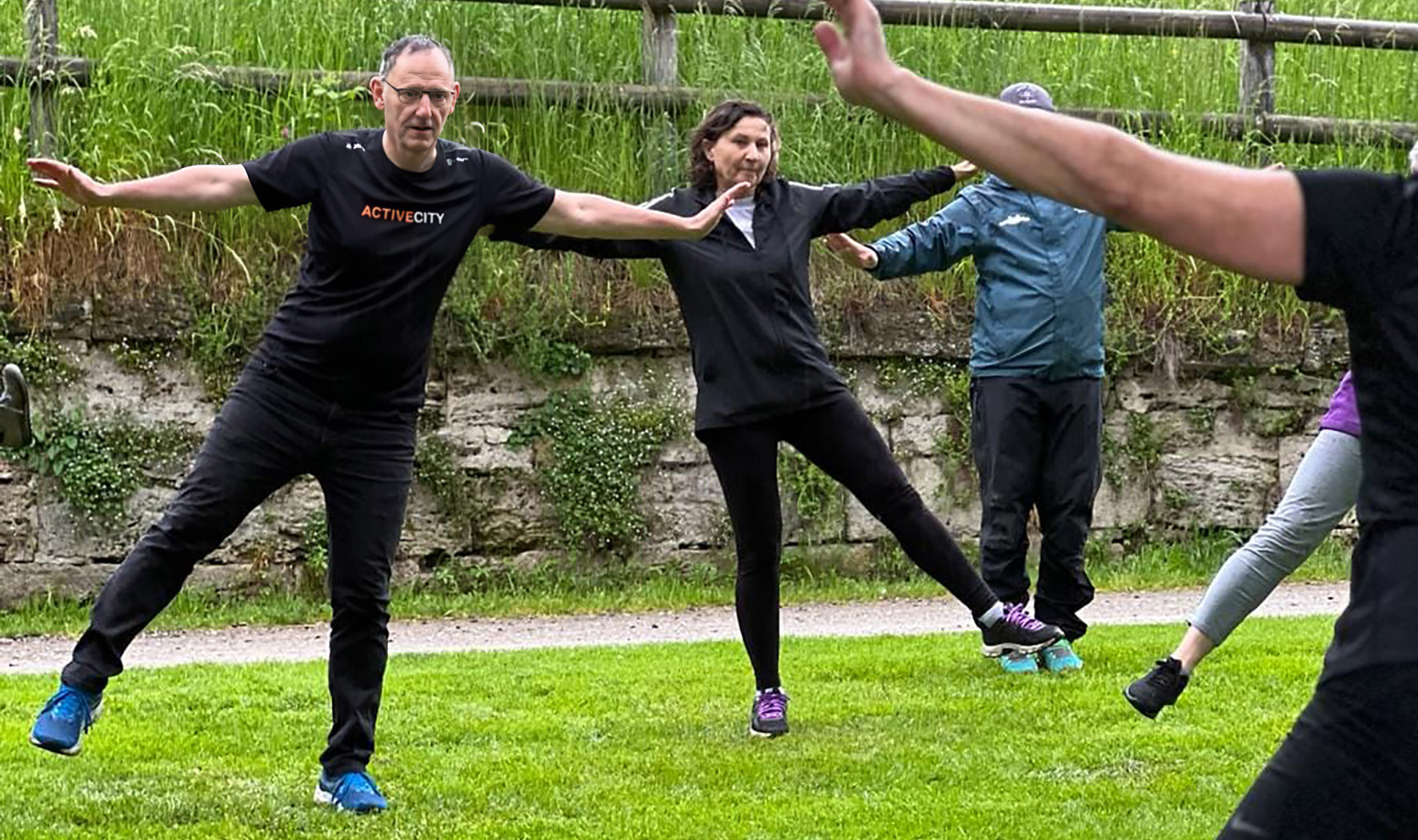Eglisau: Einfach nur schön! Eröffnung Active City mit einer super Pilates-Lektion direkt am Rhein; mit Gemeindepräsident Roland Ruckstuhl, Gemeinderätin Sandrine Haas Heegewald und vielen sportbegeisterten Eglisauerinnen und Eglisauern.