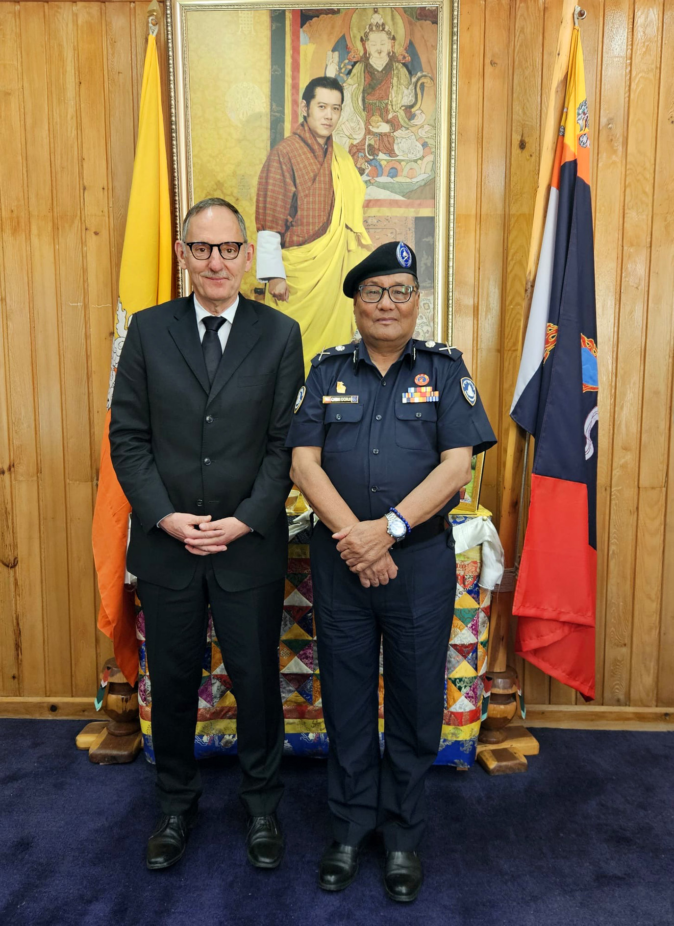 Mit Chimi Dorji, dem Polizeipräsidenten von Bhutan.